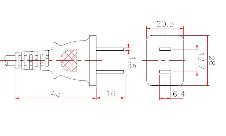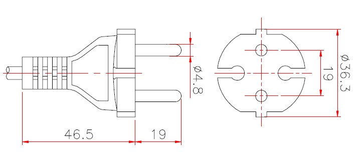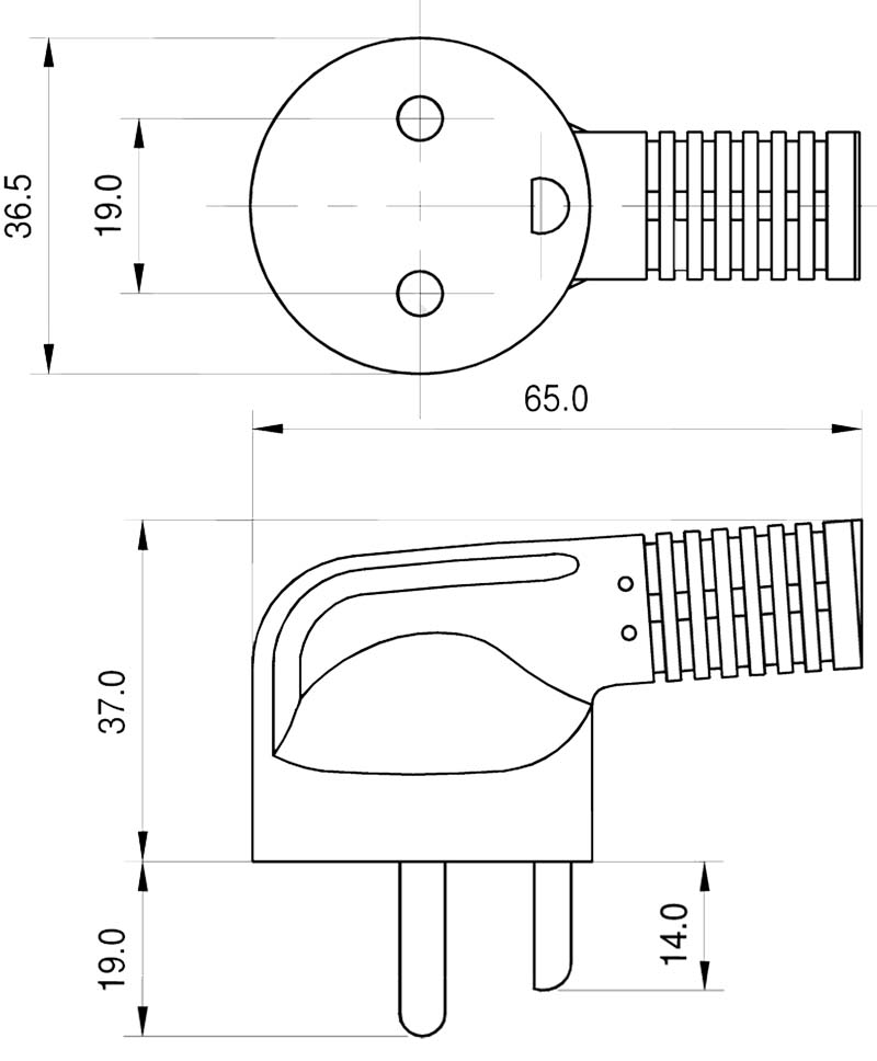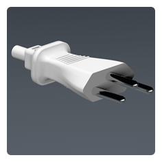 C型電插頭(或Europlug)是一種雙線插頭,有兩個圓形插針。它適用於任何可在19 mm中心接受4.0 - 4.8 mm圓形觸點的插座。它們被E,F,J,K或N插座取代,與C型插頭完美配合。