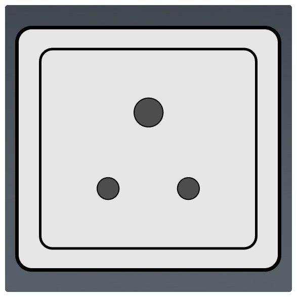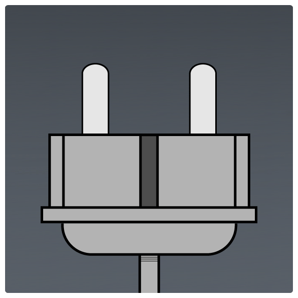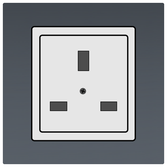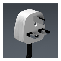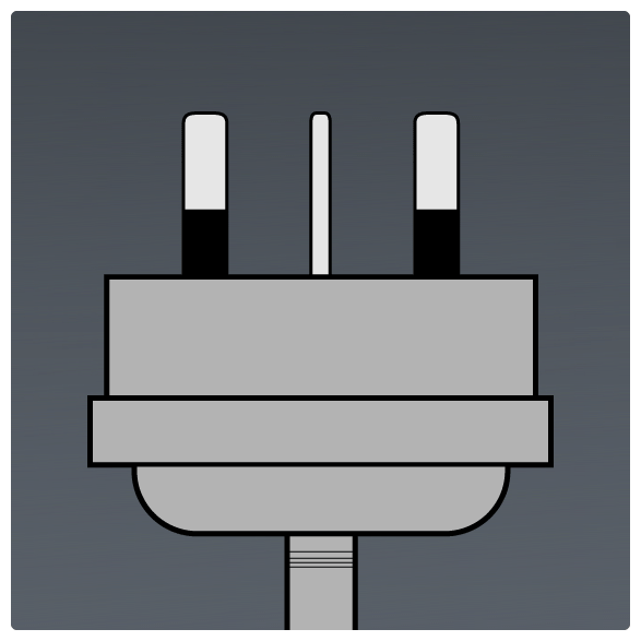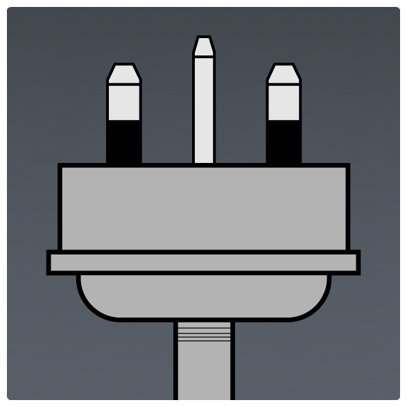 G型電插頭有三個三角形矩形刀片,並帶有一個內置保險絲(通常是3安培保險絲,用於較小的設備,如計算機,13安培保險絲,用於重型設備,如加熱器)。英國插座在帶電和中性觸點上有快門,因此不能將異物引入其中。 |