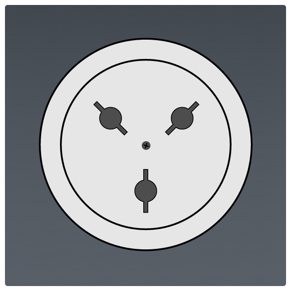 K型插頭有兩個圓形引腳和一個接地引腳。它類似於F型,不同之處在於F型有接地夾而不是接地針。C型插頭與F型插座完美兼容。E型插頭和插座也用於丹麥。 |