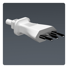 L型插頭有兩種型號,一種額定電流為10安培,另一種額定電流為16安培。10安培版本有兩個圓形引腳,厚度為4毫米,間隔5.5毫米,中間有一個接地引腳。16安培版本有兩個圓形引腳,5毫米厚,間隔8毫米,以及一個接地引腳。意大利有一種“通用”插座,包括一個用於C,E,F和L插頭的“schuko”插座和一個用於L和C插頭的“bipasso”插座。 |